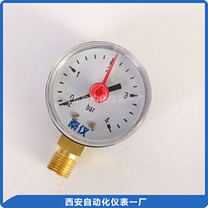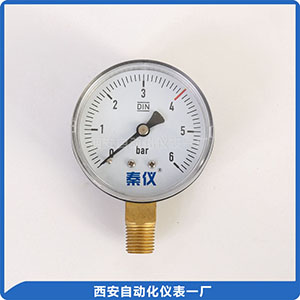普通压力表适用于测量无爆炸危险、不结晶、不凝固及对铜及铜合金不起腐蚀作用的液体、蒸气和气体等介质的压力。 轴向带支架用于安装。