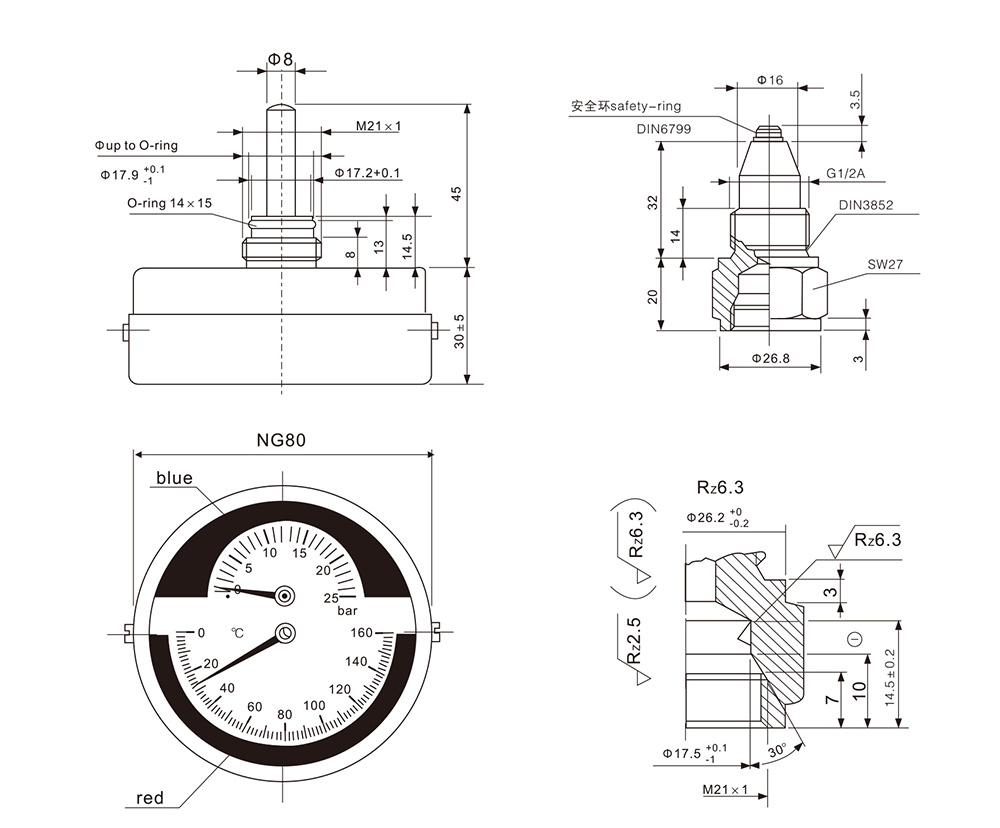 | 测量范围 | 0-40 bar/℃ |