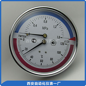 温度-压力两用仪表通过其内置的传感元件,可同时指示温度和压力。一般表面公司尺寸为80mm。