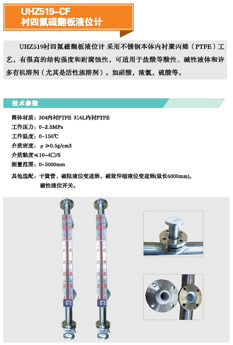 UHZ519-CF衬四氟磁翻板液位计