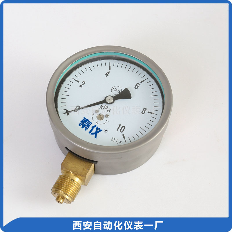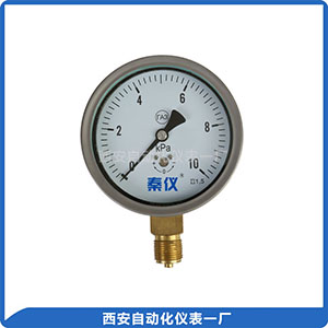 YE-100B膜盒压力表采用膜盒片作为测量微小压力的敏感元件。测量对铜合金不起腐蚀作用、 无爆炸危险气体的微压和负压,广泛应用于锅炉通风、气体管道、燃烧装置等及其它类似设备上。 仪表采用磨砂不锈钢壳体,铜接头,主要用于出口,也可供国内用户购买,选用。