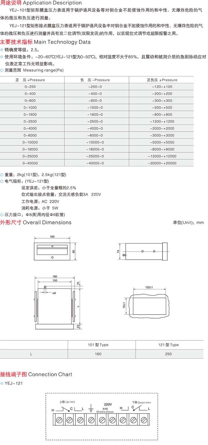 YEJ矩形膜盒压力表