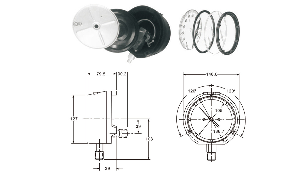 表 盘:铝 底白黑刻度字 PMa(可选bar/psi......