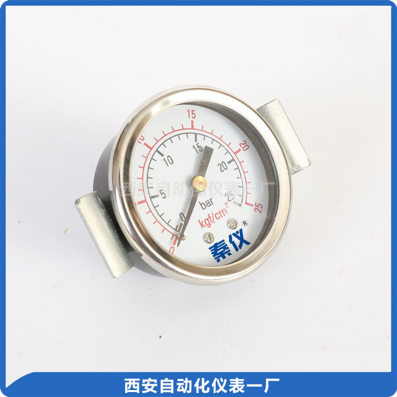 普通压力表适用于测量无爆炸危险、不结晶、不凝固及对铜及铜合金不起腐蚀作用的液体、蒸气和气体等介质的压力。 轴向带支架用于安装。