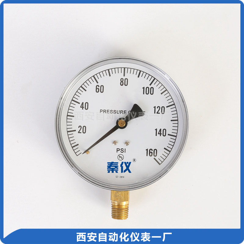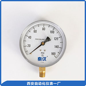 普通压力表适用于测量无爆炸危险、不结晶、不凝固及对铜及铜合金不起腐蚀作用的液体、蒸气和气体等介质的压力。 轴向带支架用于安装。