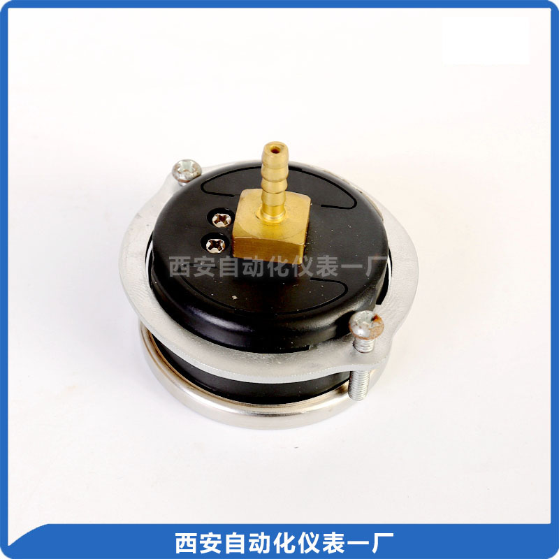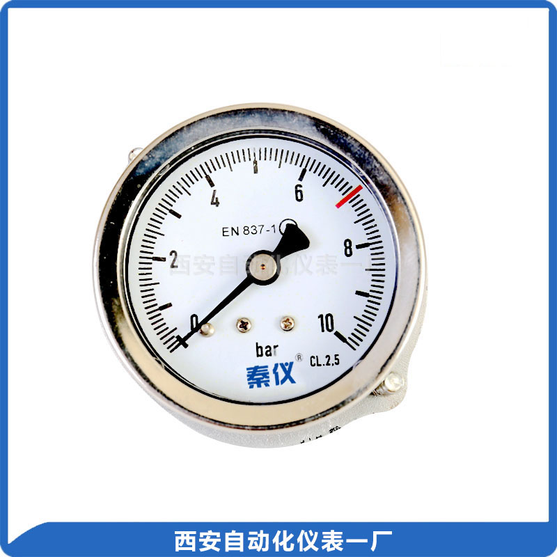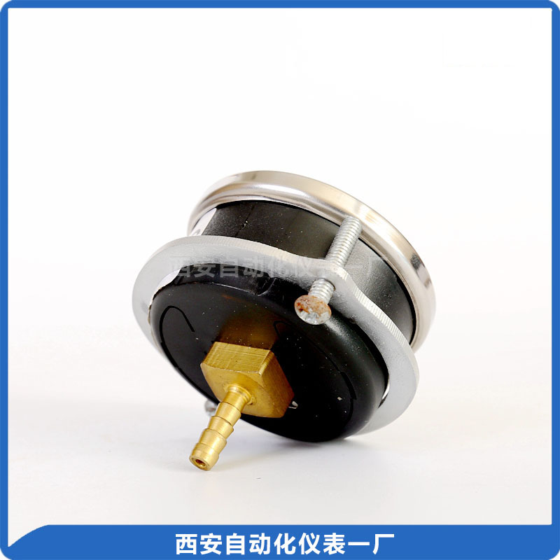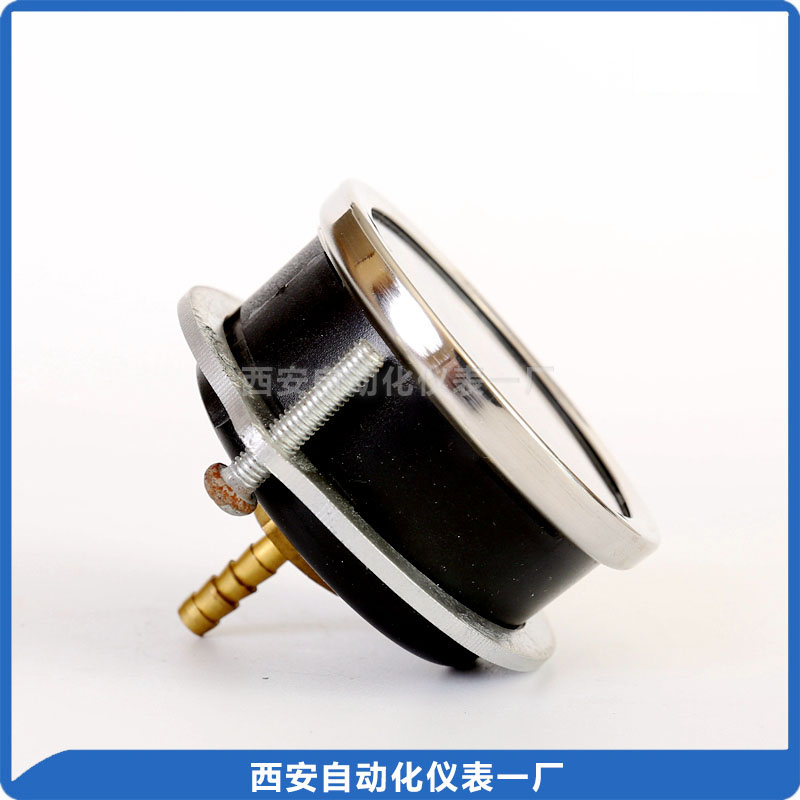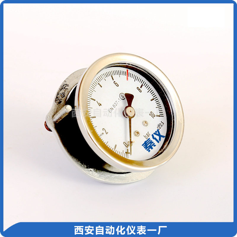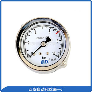 普通压力表适用于测量无爆炸危险、不结晶、不凝固及对铜及铜合金不起腐蚀作用的液体、蒸气和气体等介质的压力。 径向带后法兰,皮管接头用于安装。