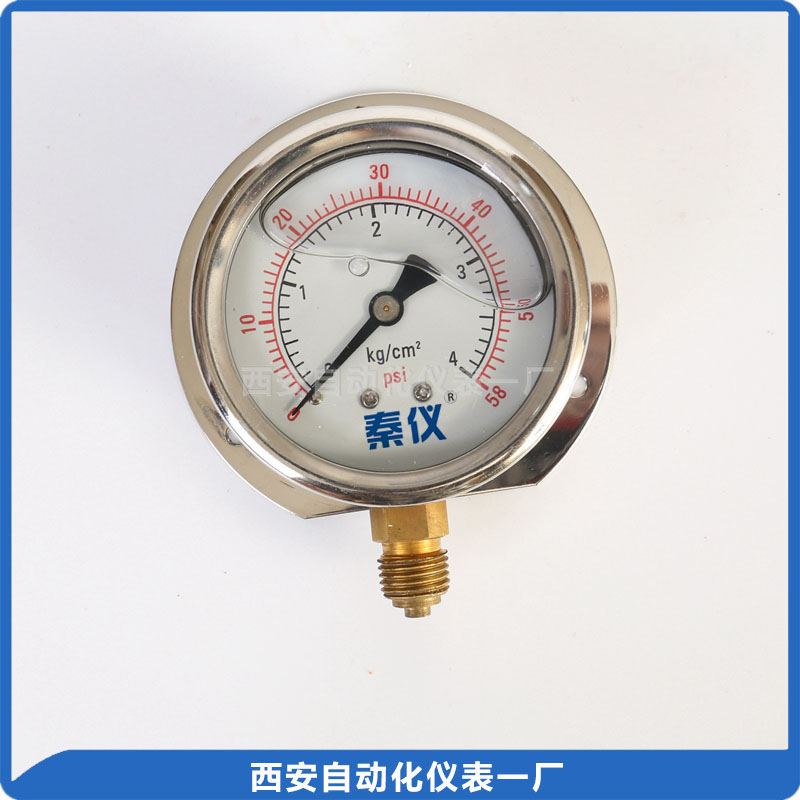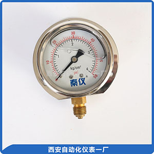 不锈钢耐震压力表的外壳用不锈钢材料制成(简称半钢),可在有腐蚀性、 振动较大的恶劣环境中使用。