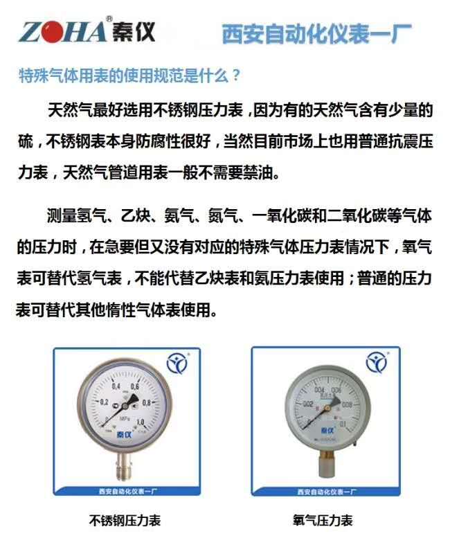 特殊气体压力表选型